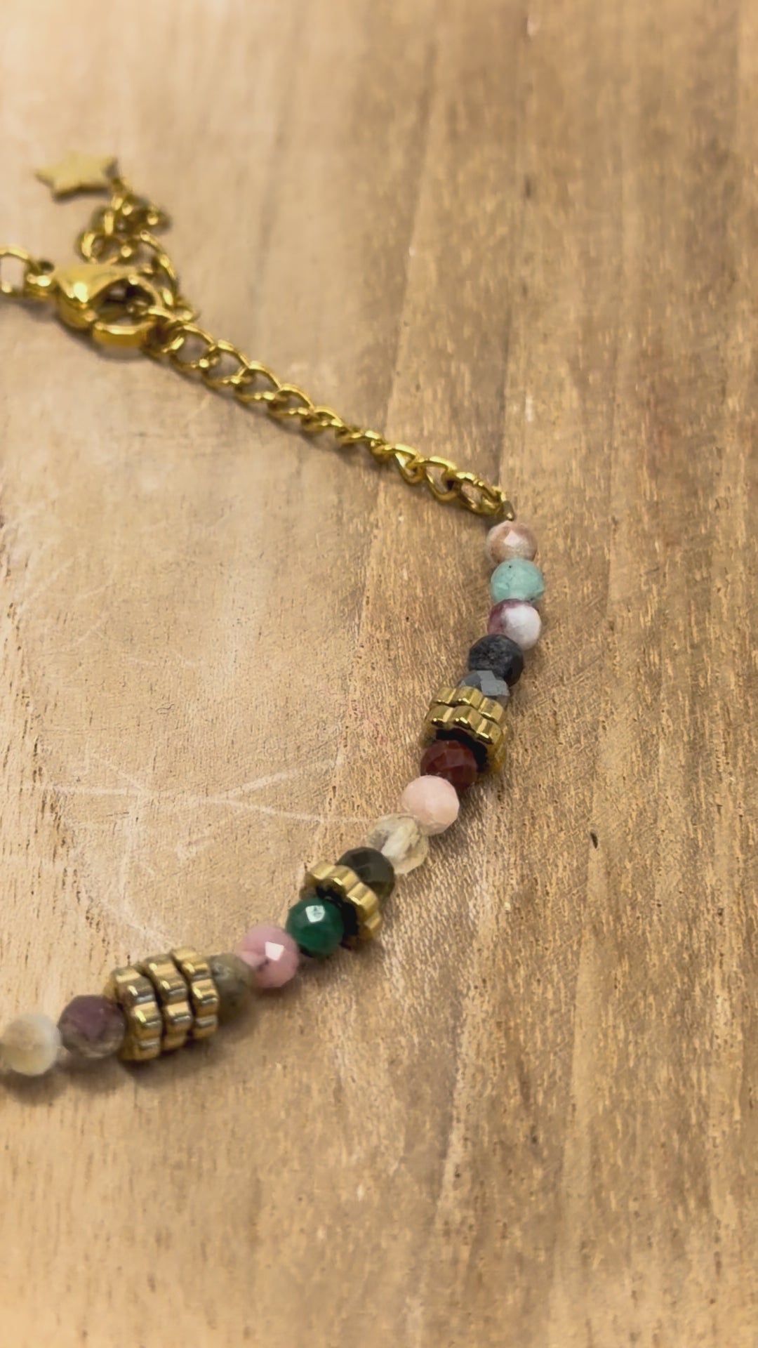 Bracelet en pierres naturelles, hématite dorée et acier inoxydable.